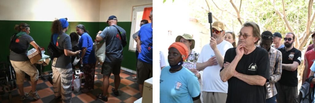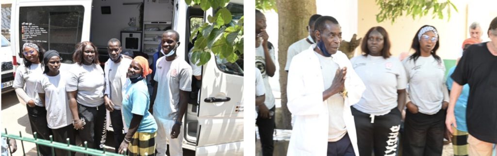 Danach ging es nach Gunjur. Wo Dr. Fabarame eindrucksvoll über die tägliche Arbeit in der Klinik berichtet. Dazu hat das Health Center auch einen neuen Krankenwagen erhalten. Am Ende wurden Vorort die medizinischen Spenden verteilt, welche die Rallyeteilnehmer mitgebracht haben.